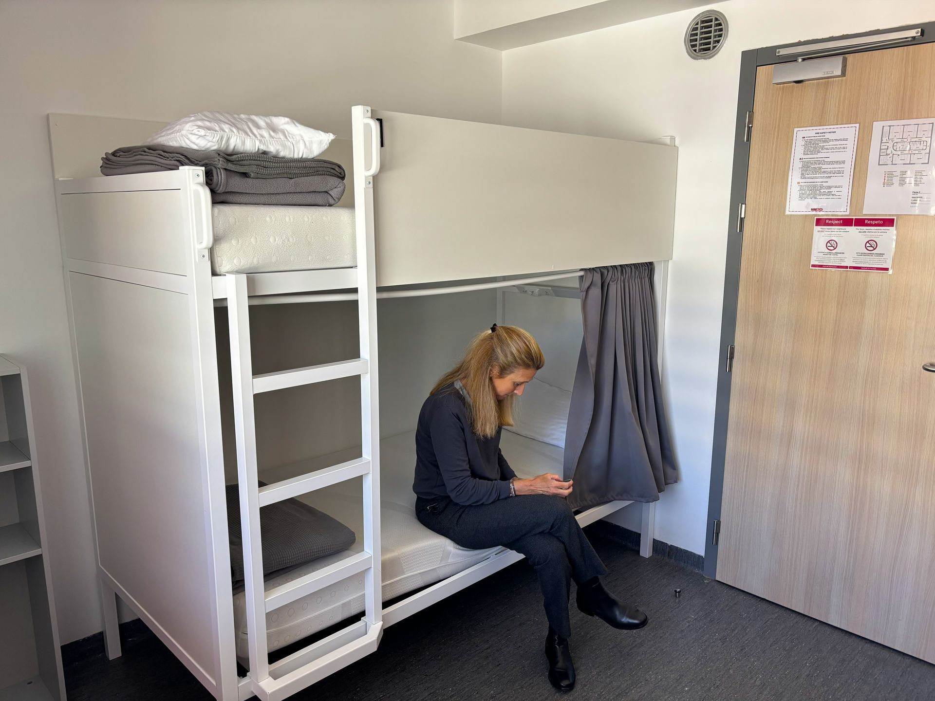 Cada cama tiene cortina, una luz de lectura y un enchufe